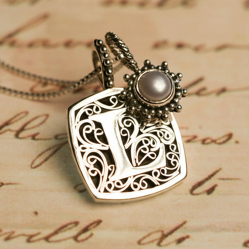 Personal initial pendants and charms in hand-detailed sterling silver