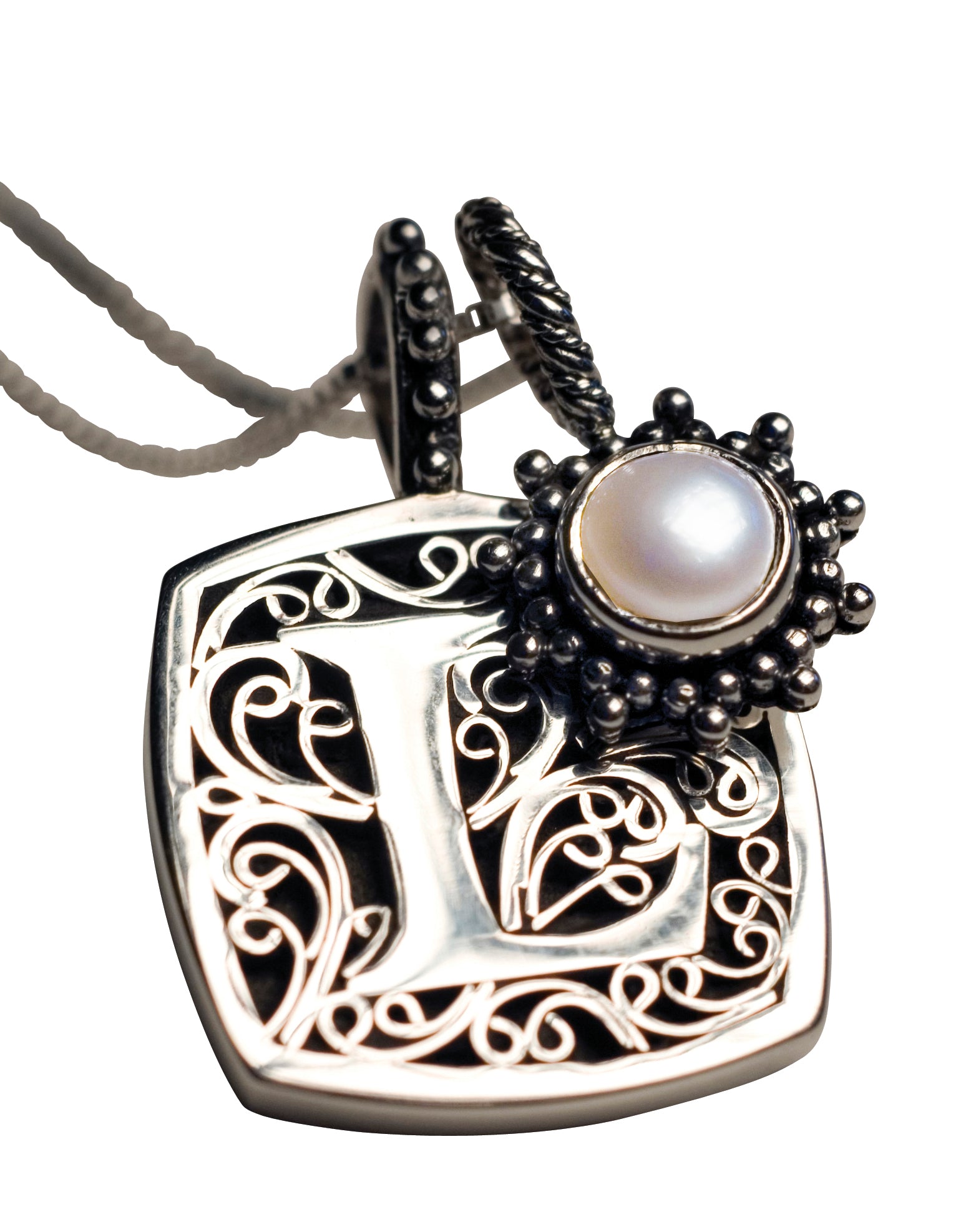 A sterling silver filigree letter pendant on an 18" box chain. Each letter is hand-detailed with intricate filigree — the kind of craftsmanship you notice when you hold it. Available...