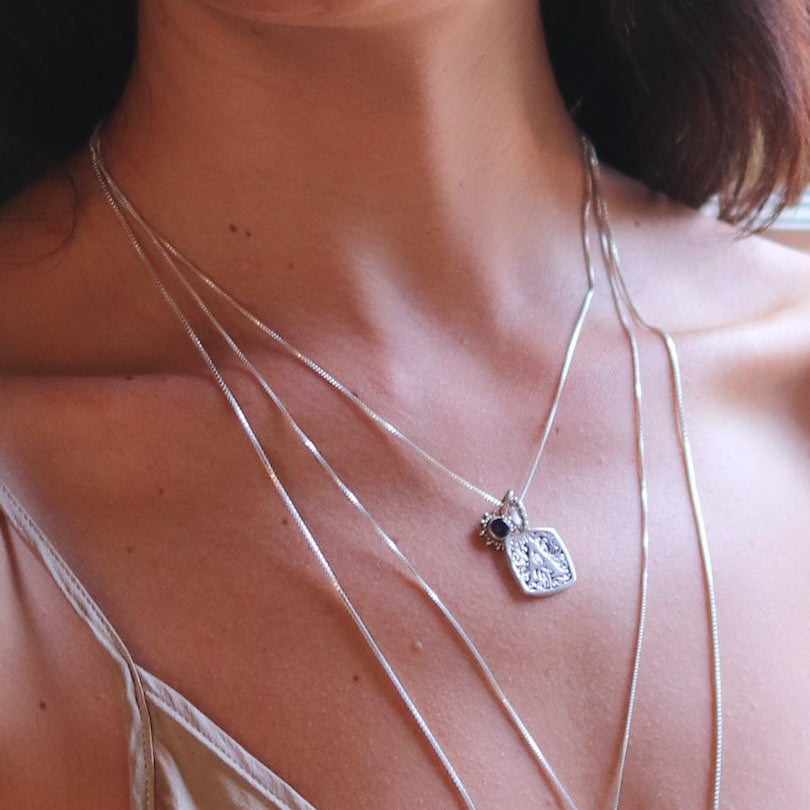 Two strands of hand-woven chain in sterling silver makes a beautiful statement on its own, loaded with pre-designed charms or worn as a lariat style necklace.